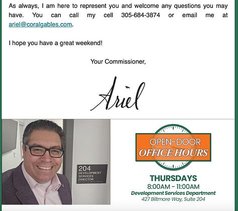 At any rate, Ariel running Kirk's campaign is the most logical explanation for the sudden emergence of remarkably Ariel-esque messaging and aesthetics from Kirk. Who else is known for their signature, self-aggrandizing, e-blasted “statements” and misaligned palm cards? Who else signs everything with their first name in cursive? And who, besides Ariel, could possibly achieve that distinctive early 2000s, Windows XP, Microsoft Word aesthetic that Kirk has recently adopted?