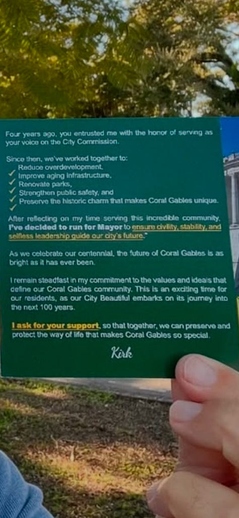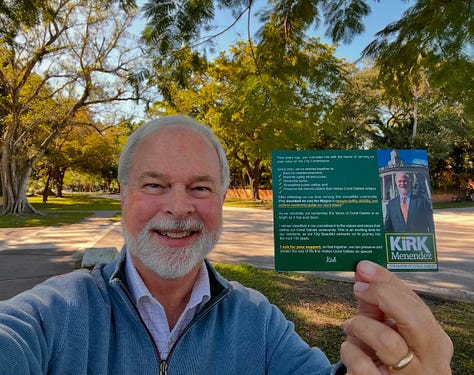 Finally, expect plenty of PAC action—potentially from both sides. We know Lago's PAC, Gables First, will provide the bulk of his air support. Given how strongly and negatively KFC's raises registered in recent polling, expect their tried-and-true strategy to continue: a constant refrain of the raises/November elections/city manager debacles straight through April.