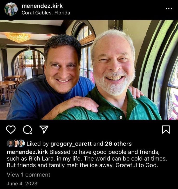Rich Lara announced his candidacy a few months ago. He’s had ample opportunity to harangue KFC for their debauchery since, yet he’s been as quiet as a church mouse until now. One presumes he chose to pounce on this item for a reason, and if you think that reason is because Lara is a longtime Lago ally recruited to harass and potentially oust Kirk (there are more logical choices than Lara for that), then you may be falling for KFC’s propaganda—or as I like to call it, propagan-duh. Here’s that Lago ally less than a year ago: